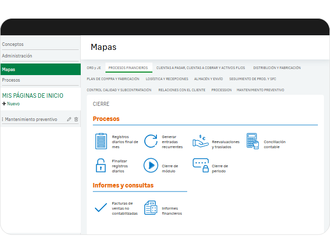 Obtén una visión financiera integral con sólidas funciones de gestión multidivisa y multiempresa, y diversas funcionalidades para elaboración de informes.